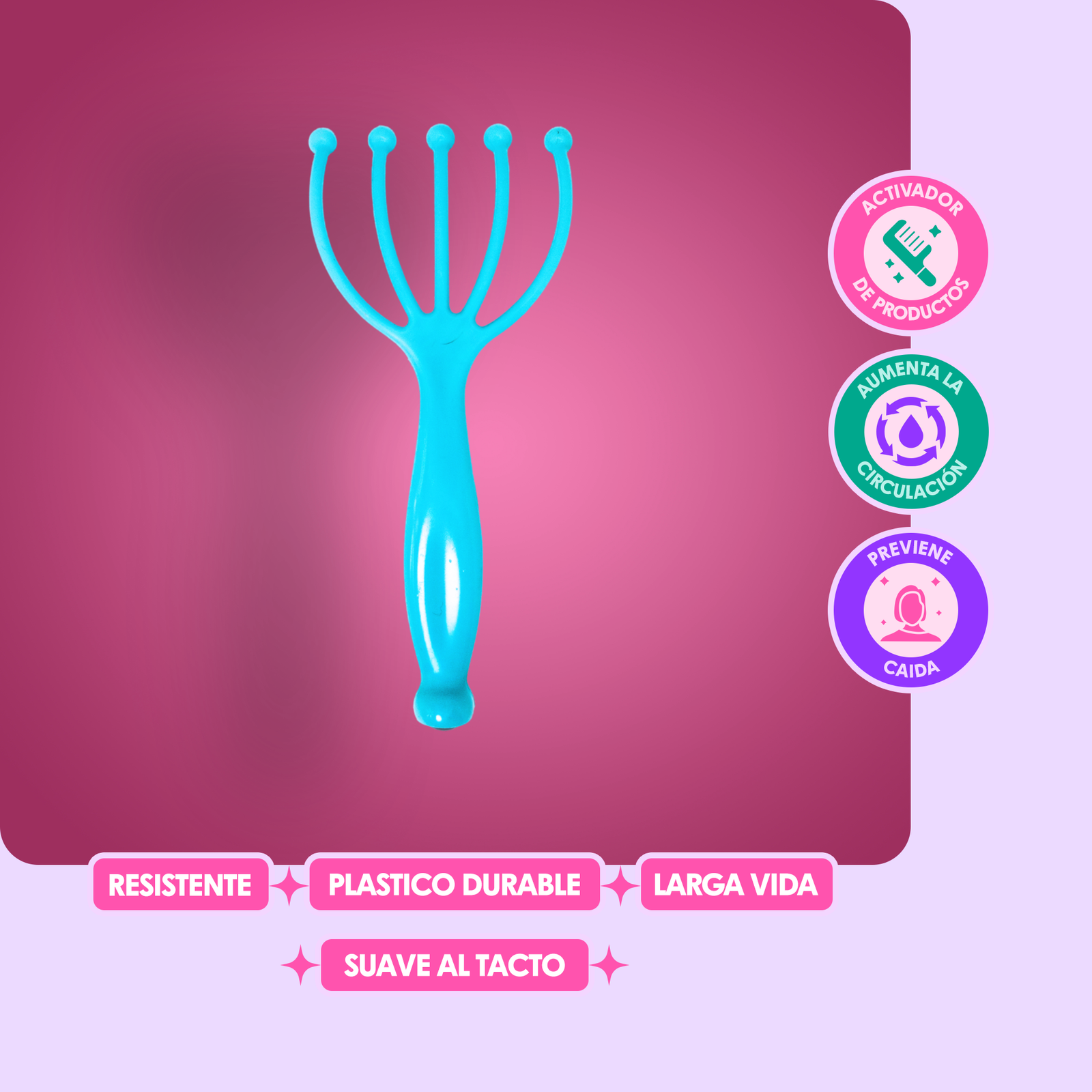 Este pequeñín a parte de dar un masaje delicioso ayuda a que el producto  que quieras aplicar en el cuero cabelludo penetren mejor, así teniendo un mejor resultado. También aumenta la circulación sanguínea, por lo tanto ayuda a prevenir la pérdida excesiva de cabello. Te encantará!